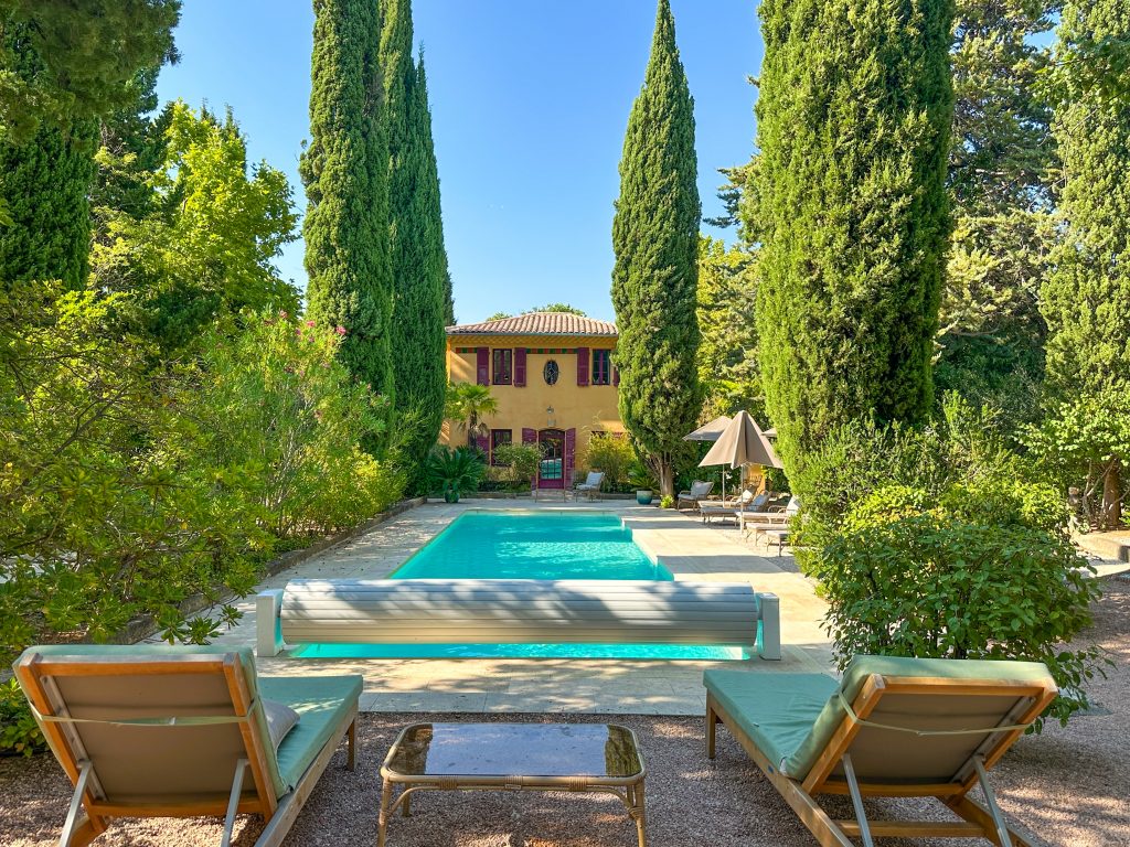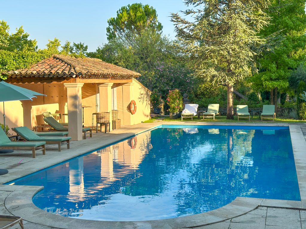 La Villa Jaune 1726, fidèle à l’architecture des bastides du Sud, déploie quatre chambres, un vaste salon avec cuisine ouverte, un jardin paysager de 1 350 m² et une piscine privée.