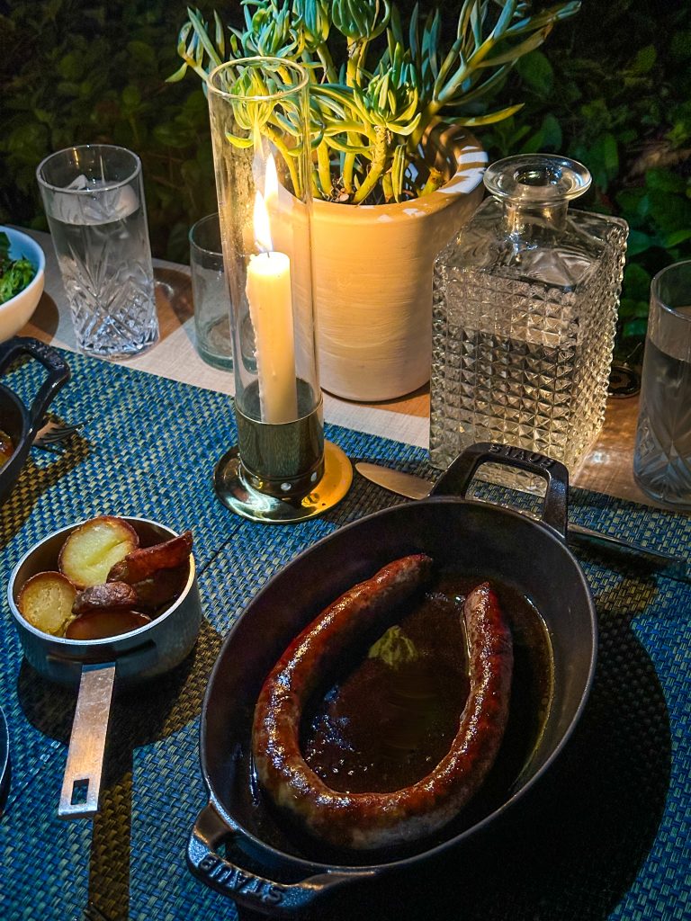 Saucisse de veau corse poêlée, pommes de terre grenaille © Corinne Martin