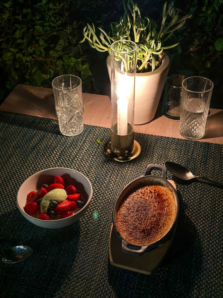 assiette de fruits et crème brulée vanille © Corinne Martin