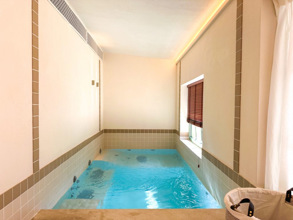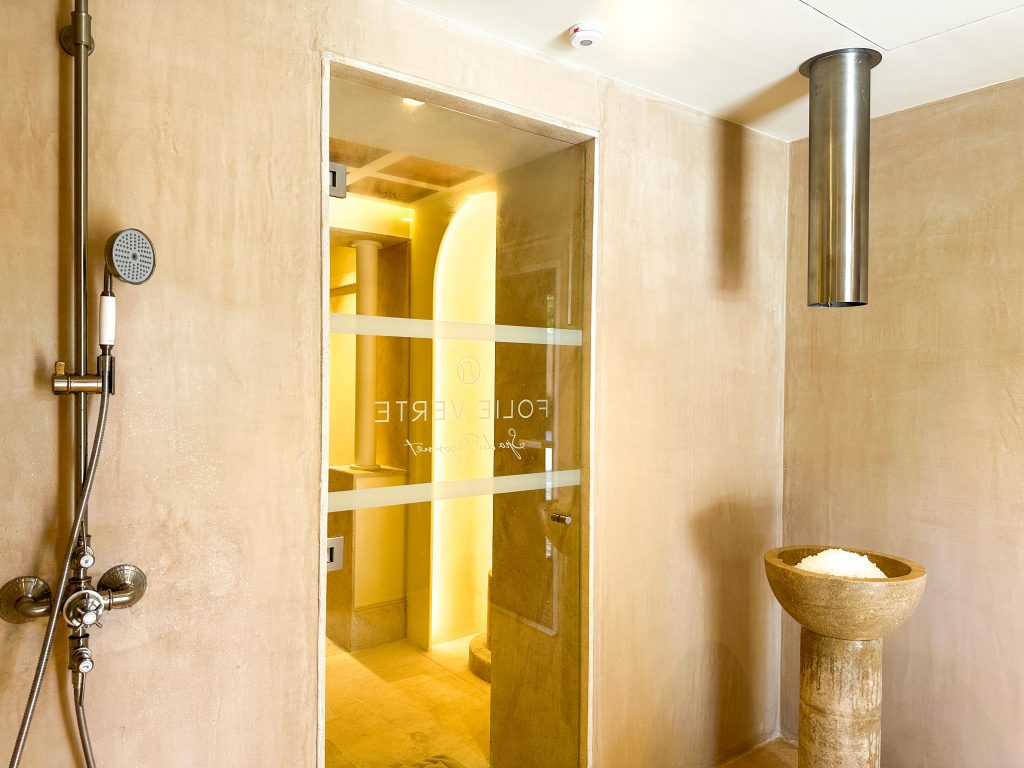 Le parcours sensoriel, composé d’un hammam, sauna, bain sensoriel et fontaine de glace, complète cette parenthèse régénérante, à savourer seul ou en suite duo privative.