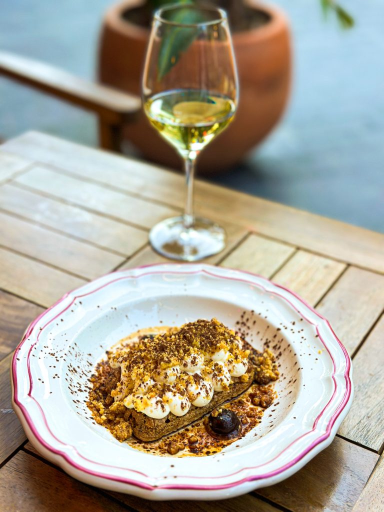 En desserts, l’audace se prolonge avec un sablé associant crème et gelée de citron aux olives taggiasche confites, ainsi qu’un tiramisu minute au gel de café, signature maison, qui clôt notre voyage culinaire avec gourmandise.