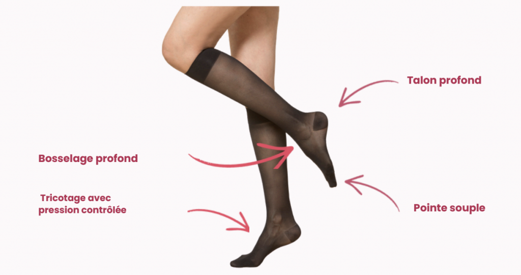 • Indications : jambes lourdes, varices, prévention veineuse, grossesse, voyages