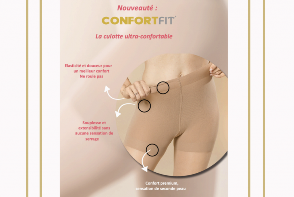 Ensuite, le confort s’impose comme un pilier central de l’innovation Divina. Son textile soyeux et respirant procure une sensation de légèreté immédiate, idéale pour un port prolongé, même en période estivale. Le panty Conforfit® joue un rôle clé : il épouse les formes sans comprimer, reste parfaitement en place et évite tout roulis ou marquage. Cette stabilité améliore nettement le confort au quotidien, en particulier lors de longues journées actives. Pensée pour respecter la peau, la matière limite les irritations et favorise une tolérance optimale. Résultat : une compression qui se fait oublier, et qui transforme le port quotidien en expérience douce et maîtrisée.