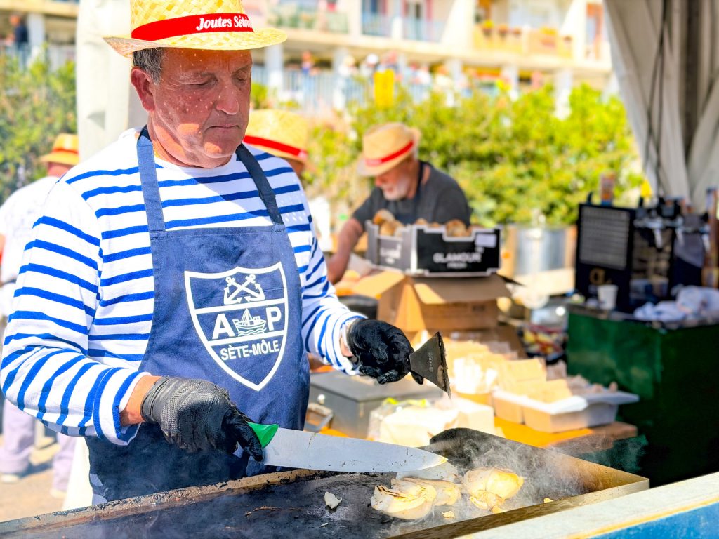 À Sète, la mer se raconte aussi dans l’assiette. Premier port de pêche de Méditerranée française, la ville doit son identité à une culture nourrie par les apports italiens, catalans et maghrébins. Tout au long du festival, « Escale assiette » met en lumière cette richesse gastronomique. Tielles, escabèches, soupes de poissons, moules farcies ou rouilles de seiche sont proposées dans les villages, les halles et les restaurants partenaires.