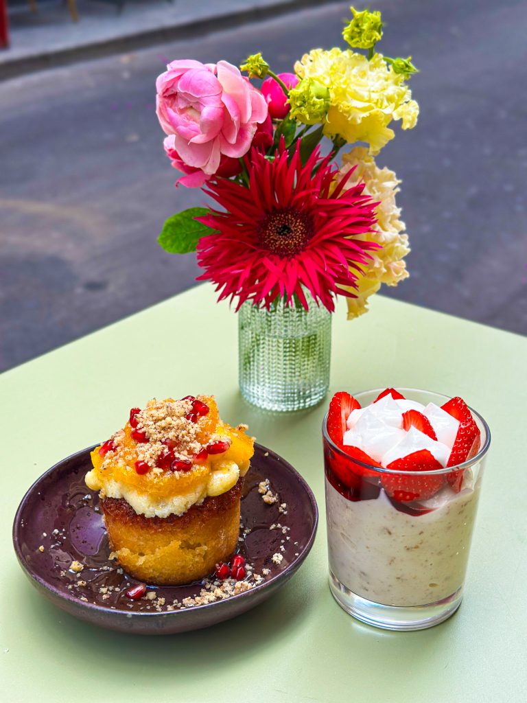 On ne résiste pas aux douceurs de la maison, comme la portokalopita, un gâteau à la pâte filo et à l’orange, et l’onctueux yaourt grec en pannacotta aux fruits rouges et biscuit à la cannelle. Ceux-ci témoignent de la fantaisie sucrée de la cheffe qui maîtrise autant les agrumes que l’huile d’olive.