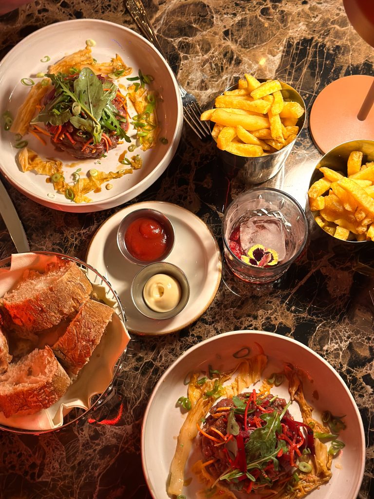Nous savourons ensuite la création spécialement imaginée pour l’occasion par Patrice Frei, un tartare de bœuf coréen au kimchi, servi avec des frites dorées et croustillantes. Chaque bouchée déploie une harmonie raffinée entre la fraîcheur du cru et la profondeur épicée de la fermentation, écho fidèle à l’art coréen qui vise à conjuguer équilibre et intensité.