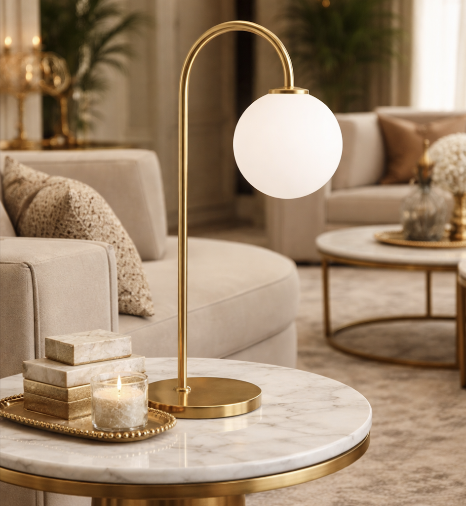 Ce luminaire à poser au style scandinave, épuré et chic, est parfait pour introduire une lumière douce et sophistiquée dans chaque intérieur. Il associe une structure en métal doré à un globe en verre opale, qui diffuse une lumière ambiante agréable sans éblouir, pour créer une atmosphère enveloppante et élégante. Inspirée des formes rondes et intemporelles, cette lampe polyvalente s’harmonise avec tous les styles décoratifs et apporte une touche de modernité subtilement raffinée à tous les espaces de vie.