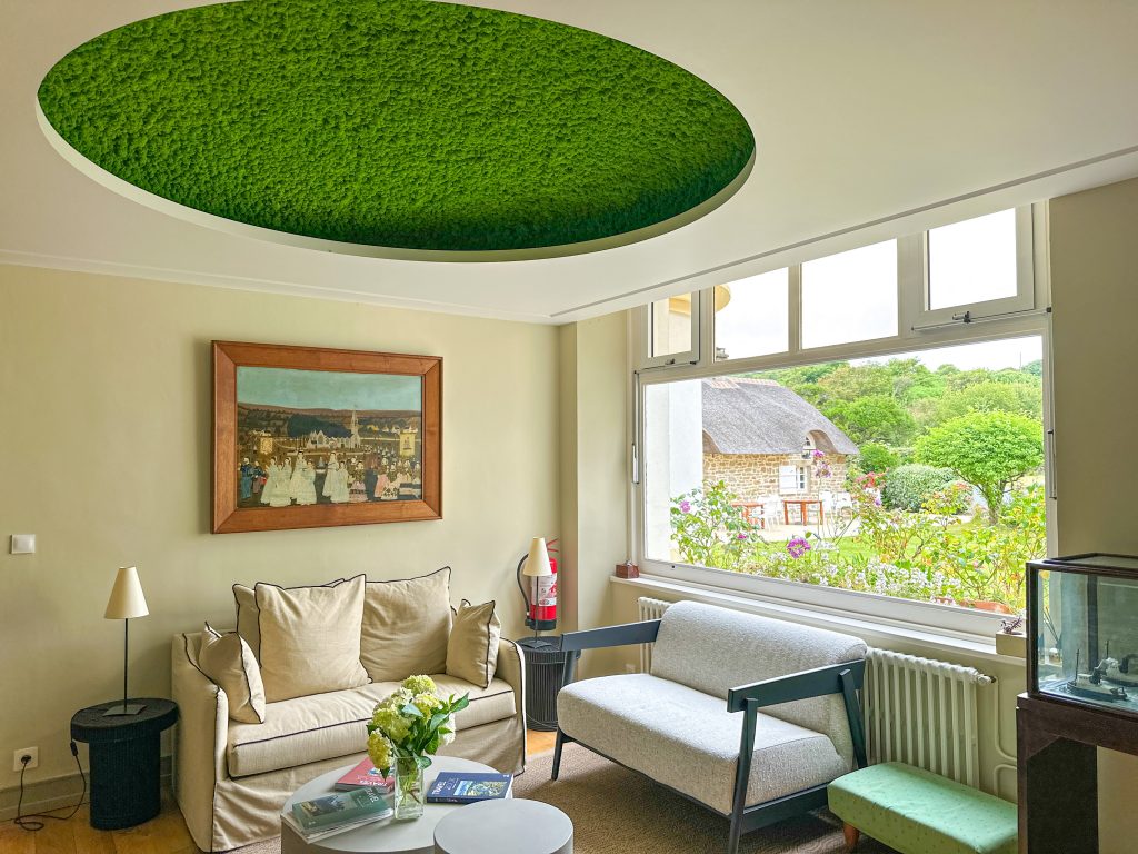 À l’Hôtel de la Plage****, le luxe se vit dans la sobriété et le confort feutré. Loin des intérieurs standardisés, cette maison les pieds dans l’eau déploie une atmosphère inspirée à la fois de l’esprit marin breton et des ambiances scandinaves apaisantes. Dans les chambres, comme dans les cocons baignés de lumière, se mêlent mobilier de famille, antiquités choisies et lignes contemporaines, créant une harmonie délicate. Au restaurant panoramique, la vue sur l’océan dialogue avec les toiles sensibles de Mathurin Méheut, fidèle hôte de la maison. On retrouve ici l’âme d’une vieille demeure cossue où chaque détail raconte une histoire. Lorsque le vent s’engouffre dans la baie, l’hôtel prend des allures de décor romantique.