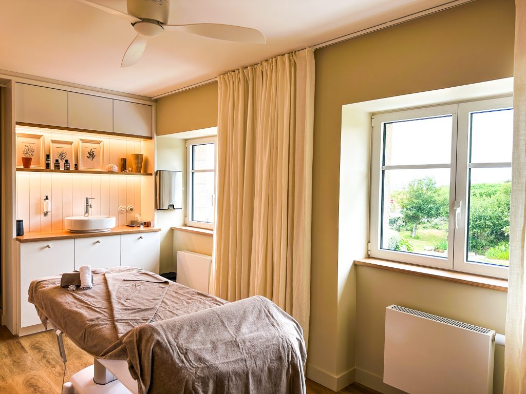 Côté soins, le spa mise sur Algologie, marque bretonne de cosmétique marine élaborée à partir d’algues récoltées sur la presqu’île de Pen Lan. Ces formules naturelles, riches en minéraux et oligo-éléments, nourrissent et revitalisent la peau en profondeur. La carte de soins propose des rituels signatures comme le massage Sainte-Anne, aux gestes enveloppants, ou le Kervel, vitalisant et apaisant. Le soin du visage Kobido raffermissant ou encore la réflexologie plantaire complètent l’expérience. Une immersion sensorielle où l’efficacité des actifs marins rencontre le savoir-faire d’Anaëlle, la praticienne experte du spa.