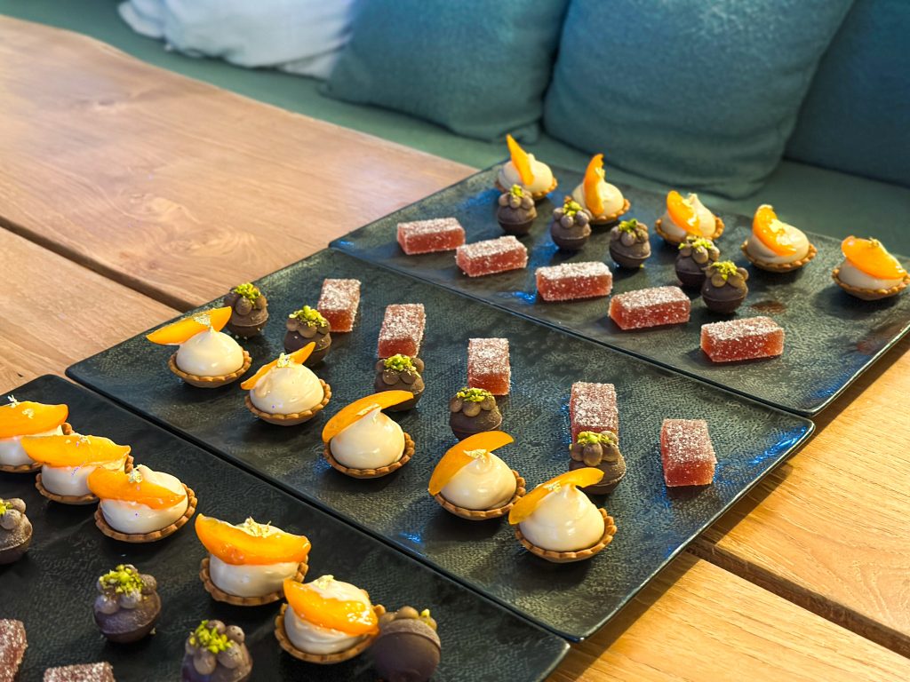 L’océan est omniprésente à la table du restaurant de l’Hôtel de la Plage****. Les poissons nobles comme le bar, le saint-pierre ou le turbot sont servis entiers, découpés en salle, tandis que langoustines, homards bleus et saint-jacques révèlent toute leur fraîcheur dans des assiettes précises et raffinées. Les algues locales et les jus d’extraction réalisés à partir de carcasses marines viennent intensifier les saveurs, offrant une profondeur gustative particulière.