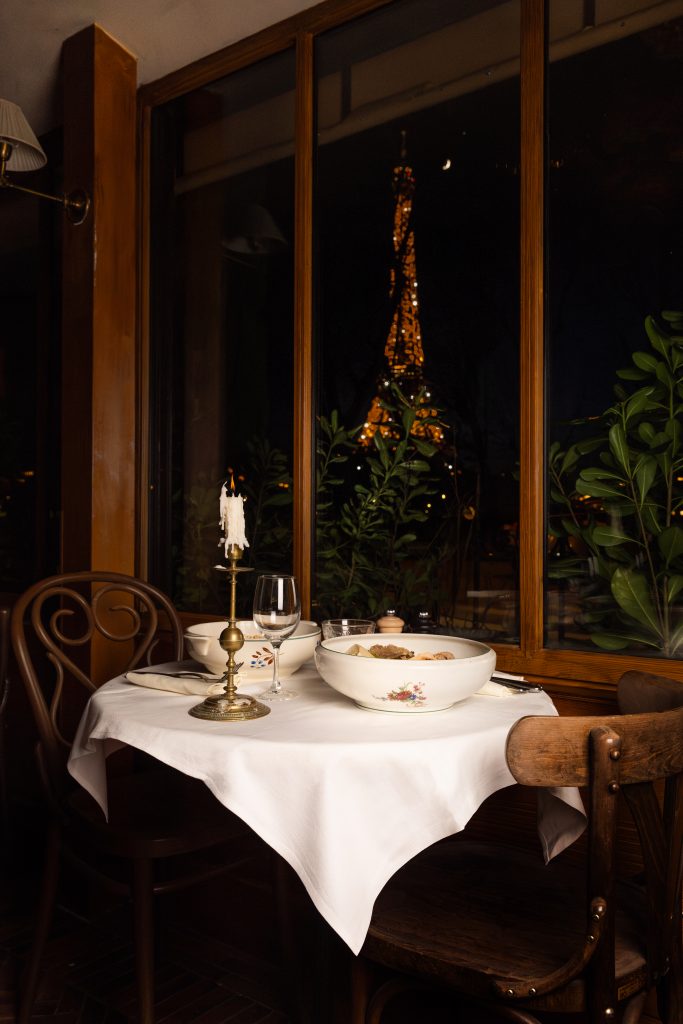 Chez Margaux, chaque repas évoque une joyeuse remontée dans le temps. On y retrouve les saveurs d’enfance, les plats de grand-mère et les odeurs d’un dimanche en famille. Le repas se termine dans la bonne humeur, autour d’un café ou d’un digestif, tandis que la Tour Eiffel scintille juste derrière la vitre.
