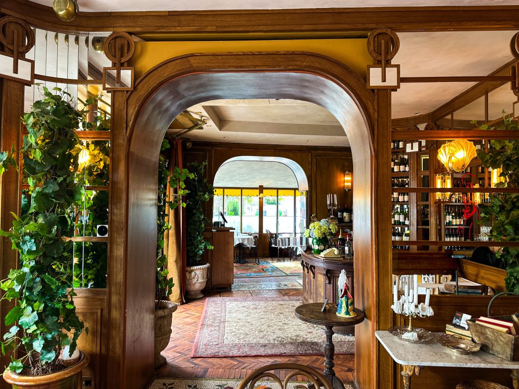 Pousser la porte de Margaux, c’est entrer dans un autre temps. Le décor, à mi-chemin entre brasserie à l’ancienne et maison de famille, évoque immédiatement les repas dominicaux chez grand-mère. Les boiseries chaleureuses, les nappes blanches, les vaisseliers d’époque et les ustensiles, chinés par Michel Puech lui-même, créent une atmosphère hors du temps. Sur les murs, des photos anciennes et quelques objets de collection rappellent le Paris d’hier. L’éclairage tamisé, les bougies sur les tables, les serveurs en costume ajoutent une ambiance feutrée et élégante à l’ensemble. Certaines tables, placées à côté de larges fenêtres, offrent une vue à couper le souffle sur la Tour Eiffel. Le soir, quand elle scintille, le dîner prend des allures de moment suspendu, tandis qu’au fond de la salle, le portrait de mamie Margaux préside, bienveillant.
