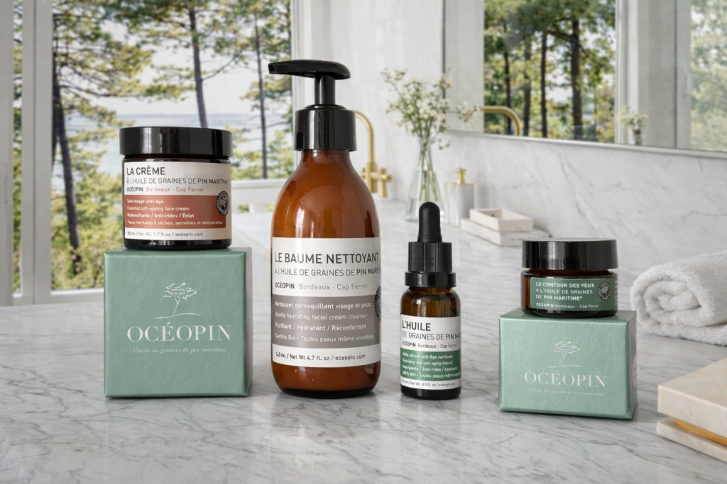 Articulée autour de son actif signature, la gamme Océopin décline ses bienfaits à travers plusieurs soins essentiels. L’huile de graines de pin maritime bio reste le produit iconique, utilisée comme un sérum naturel aux propriétés anti-âge. La crème visage offre une texture soyeuse et une action globale sur la qualité de la peau, tandis que le baume nettoyant, formulé avec cette huile précieuse, permet de nettoyer et démaquiller en douceur sans altérer l’équilibre de la peau. Le contour des yeux, quant à lui, cible la zone fragile du regard avec une texture adaptée, contribuant à lisser et défatiguer. Une routine cohérente, centrée sur un ingrédient unique et traçable, qui incarne l’approche experte et naturelle de la marque.