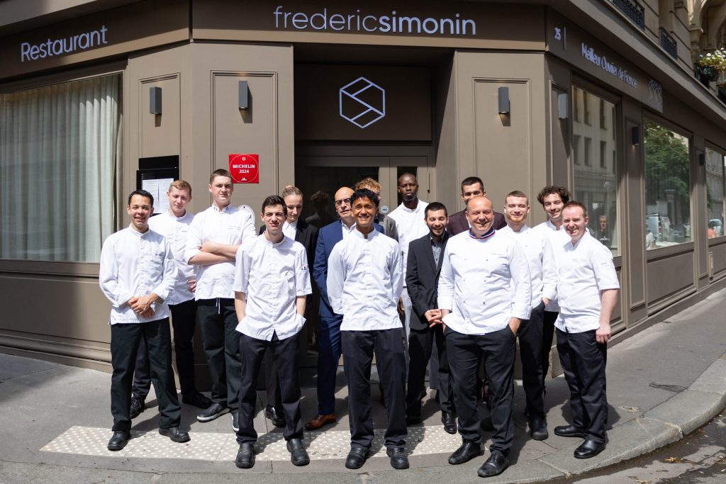 Né d’un père militaire, Frédéric Simonin découvre très jeune le goût du dépassement. À quinze ans, il débute son apprentissage en Bretagne, avant d’être sacré Meilleur Apprenti de Bretagne deux ans plus tard. Son ascension s’écrit ensuite dans de grandes maisons, Ledoyen auprès de Ghislaine Arabian, Le Meurice avec Marc Marchand, Taillevent, puis le George V sous la direction de Philippe Legendre.